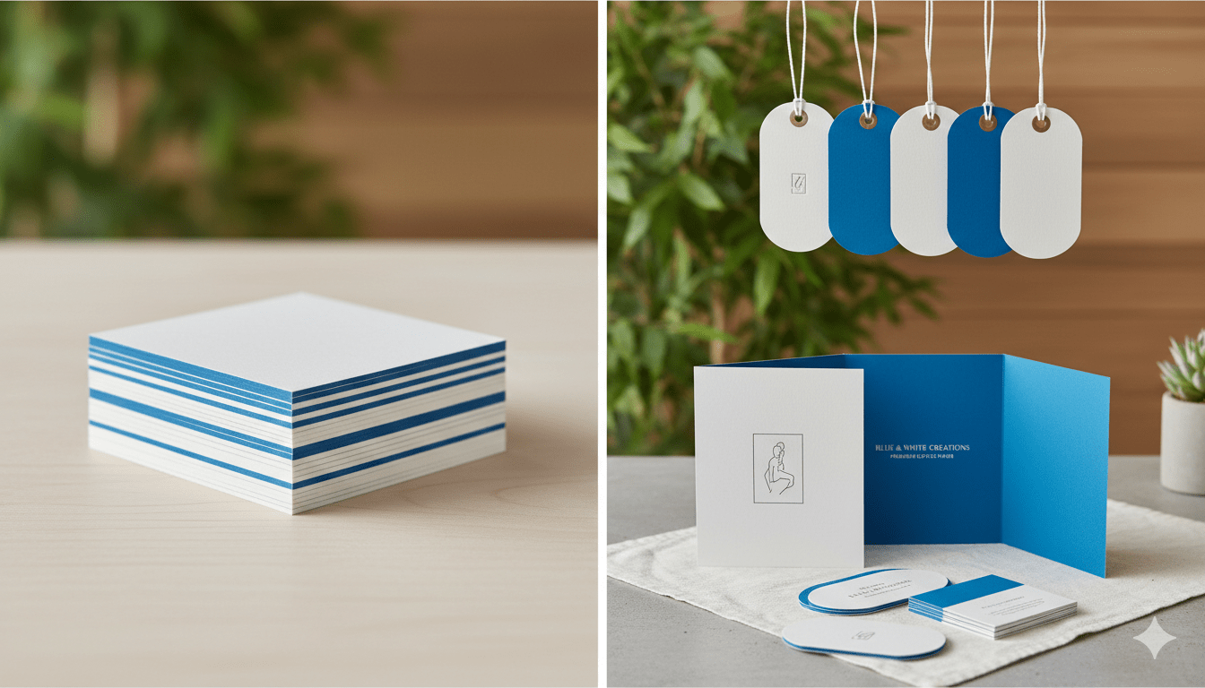 Make a bold statement with this premium dual-toned specialty paper. Featuring a striking contrast between a vibrant, Mediterranean blue and a crisp, clean white, this duplex cover stock is designed for high-impact projects that require a sophisticated touch.