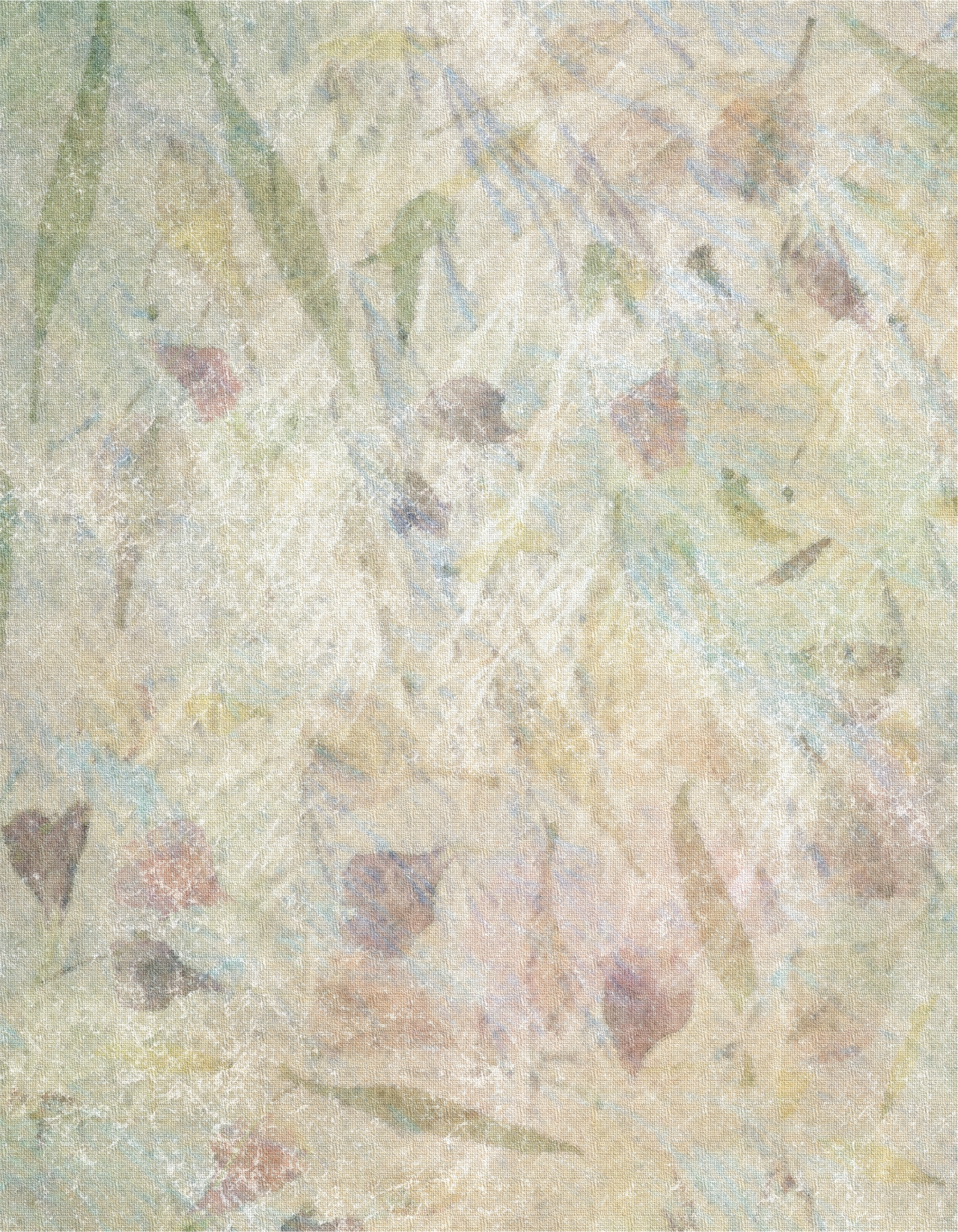Elevate your next project with a touch of timeless elegance. This 8.5″ x 11″ cover sheet features a distressed botanical motif, blending soft watercolor washes of sage green, dusty rose, and muted gold. The design is finished with a weathered, linen-like overlay that provides a rich, tactile aesthetic without the actual grit of aged paper.
